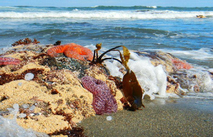 Mussel Rock is a rock formation of several small islands, due to the unevenly eroded headlands. The tide pools are pretty awesome, with lots of sea stars, nudibranchs, sea anemones, and of course mussels.